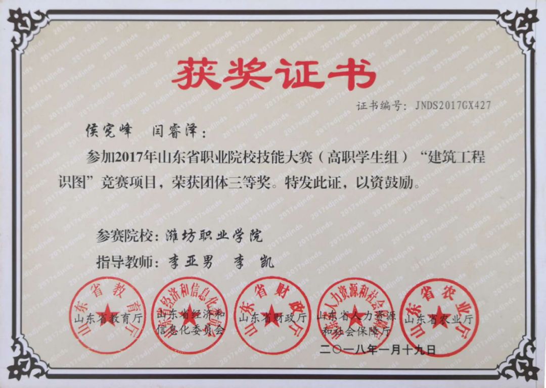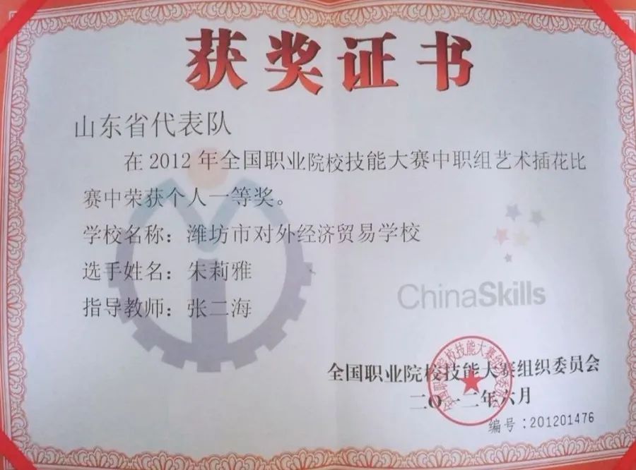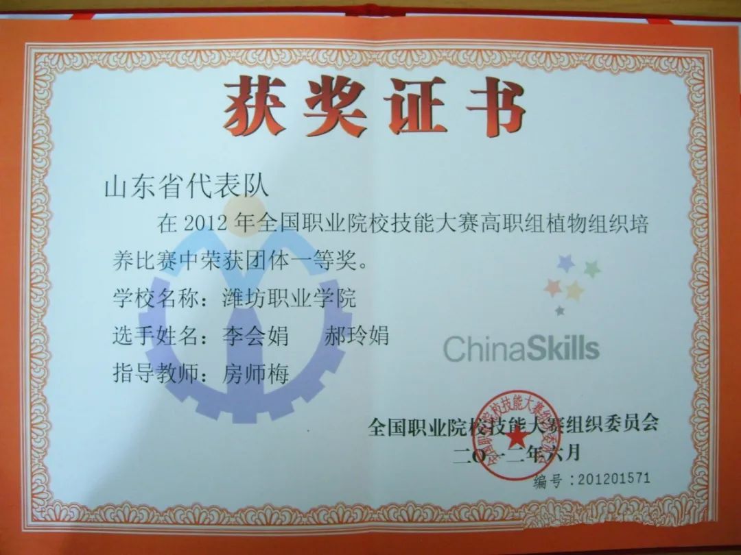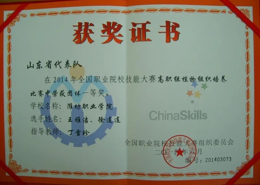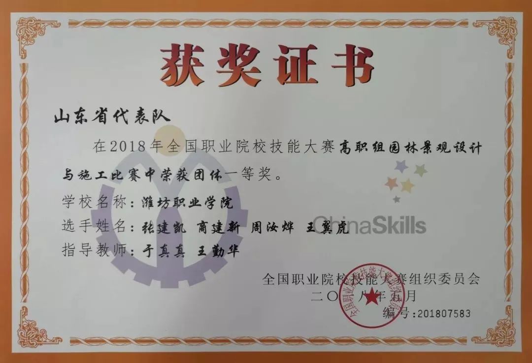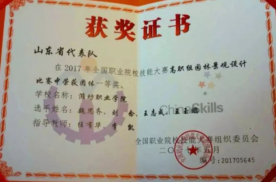世界技能大赛园艺项目山东省选拔赛一等奖2项,二等级2项;世界技能大赛园艺项目全国住建系统选拔赛二等级1项
