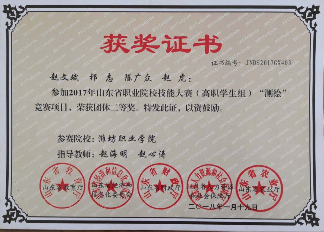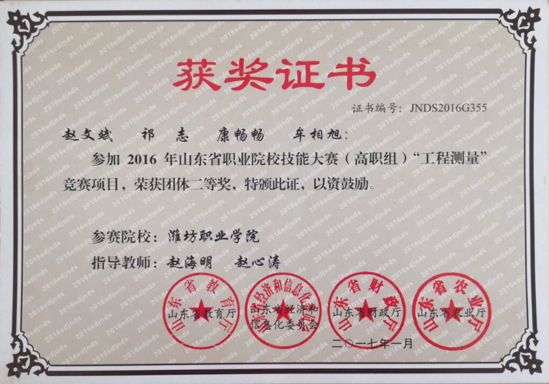 2016、2017年山东省职业院校技能大赛“测绘”赛项二等奖
