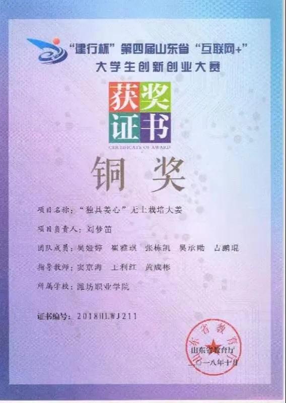 “建行杯”第四届山东省互联网+大学生创新创业大赛铜奖