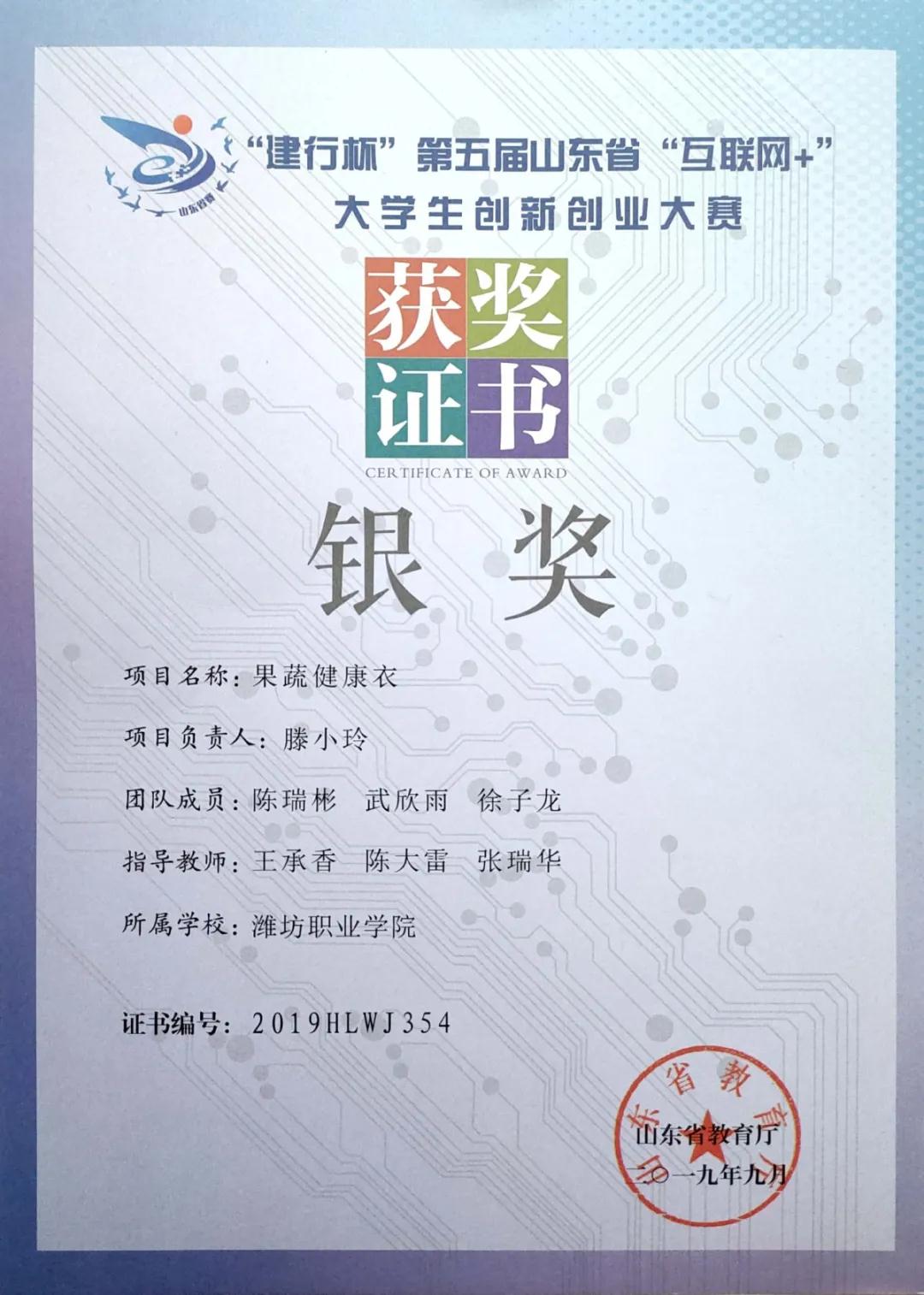 山东省“互联网+”大学生创新创业大赛银奖