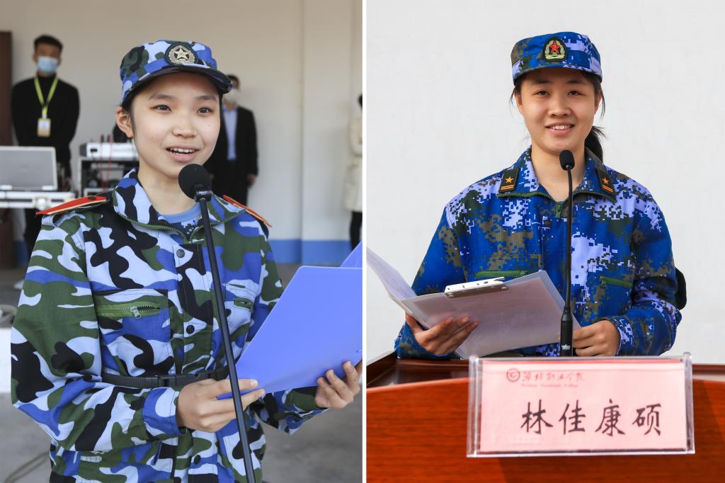 刘德强宣读了《关于表彰2020级优秀新生的决定》。军训教官代表、教师代表和新生代表发言。
