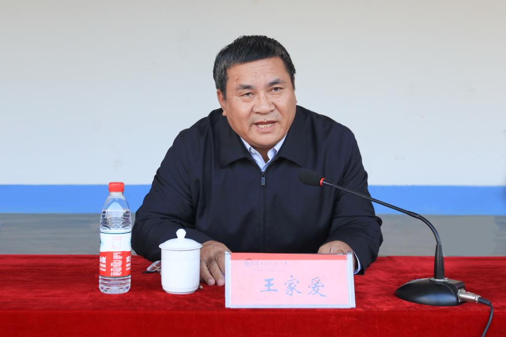 王家爱作讲话。他代表全院师生员工向2020级新同学表示热烈欢迎,介绍了学院基本情况、办学成绩和学院未来发展规划等情况。王家爱表示,大学是知识的殿堂,是人生新的起点,潍职是一所充满发展活力的学校,希望同学们把自身发展与国家前途、民族命运紧密联系在一起,在潍职这个大家庭创造属于自己的辉煌,并提出四点希望和要求:一要尽快转变学习观念,学会主动学习。要养成自我管理习惯,合理安排学习时间,充分利用各种学习资源,练就过硬本领,努力成长为高素质、高技能、全面发展的优秀人才。二要尽快融入大学集体,学会独立生活。要尽快找准位置,转变角色,融入集体生活;学会自主独立,做到诚信为本、严于律己、宽以待人;学会关心、学会分享、学会合作;学会在各种“磨合”之中找到新的认同,达成新的共识,确立新的平衡。三要尽快适应新的环境,学会重塑自我。要在与环境的互动性变化中,调整自我,重塑自我,学会适应社会、学会做人,继承发扬中华民族的优良传统美德,勇敢承担社会责任,做学校的合格学生、做社会的合格人才、做国家的合格公民。四要尽快调整状态,积极投入军事训练。要扣好大学这个人生阶段的第一粒扣子,在军训中发扬顽强拼搏精神,服从学校安排,听从教官指挥,克服艰苦条件,积极参与训练,争取以优异表现完成军训任务。希望教官们严格要求,加强训练,为2020级新同学上好入学第一堂课。
