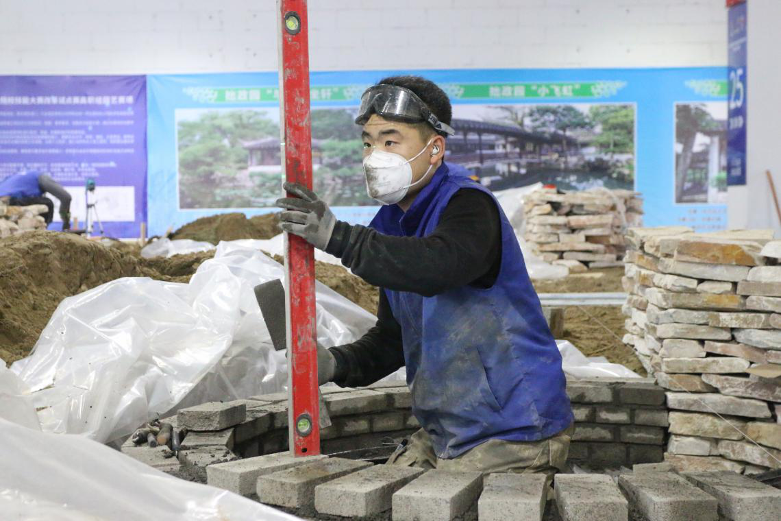 本次比赛为期三天半,时间为22小时,竞赛内容是在7×7m的场地里,按设计好的赛题,使用工具对指定造景材料进行制作、安装、布置和维护。比赛过程中,要求选手合理的安排工作流程、注意个人防护,施工动作符合人体工程学,同时要合理安排工时,在完成每天测评模块的前提下可以提前进行次日考核模块的制作。