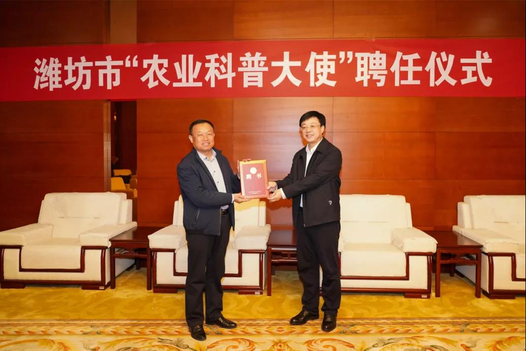 马跃启对潍坊市委、市政府给予学院的关心支持和肯定表示感谢,希望丁世民教授借助潍坊科技馆这一有力平台,发挥专业优势,开展多样活动,使农林科技成果惠及更多人民群众。下一步,学院将全力支持科普大使开展工作,并将继续加大农林类专业建设力度,凝聚更多教师力量和专业资源,不断壮大学院志愿科普队伍,构建院馆合作科普及服务发展新模式,为潍坊市现代农业发展作出新贡献。