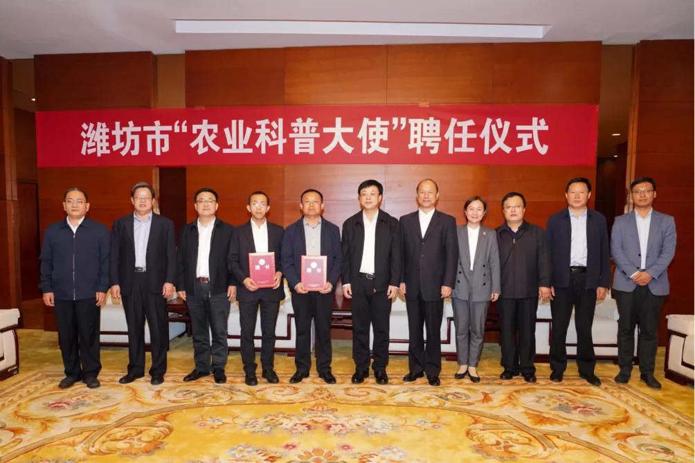 10月15日,潍坊市“苗木科普大使”聘任仪式在潍坊市科技馆举行,我院丁世民教授获聘。潍坊市委副书记、市长刘运出席仪式,并颁发聘任证书。学院党委书记马跃启,市委副秘书长尚仕国,市科协党组书记、主席孙晓非,市农业农村局三级调研员赵庆胜,市科协党组成员、市科技馆馆长许军以及学院宣传部相关人员参加仪式。