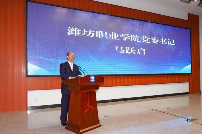 马跃启致辞,他代表学院党委、行政向研究院成立表示热烈祝贺,向莅临大会的各位领导、嘉宾表示热烈欢迎。他介绍了学院基本情况和近年来取得的办学成果。他指出,学院以习近平新时代中国特色社会主义思想为指导,紧紧抓住新旧动能转换和乡村振兴等国家战略机遇,深化产教融合、校企合作,不断实现事业发展新跨越。为新旧动能转换、乡村振兴输送了大批高素质技术技能人才。在学院建校65周年之际,学院牵头成立潍坊市潍职大姜脱毒种苗研究院,是贯彻落实习近平总书记对农业及种业发展批示精神的具体行动。我们将不忘初心、牢记使命,认真肩负乡村振兴使命,建立科学高效的研究院工作运行、科学研究、成果推广孵化机制,推动潍坊大姜种苗产业高质量标准化发展、为潍坊“三个模式”创新提升与推广作出“潍职贡献”。