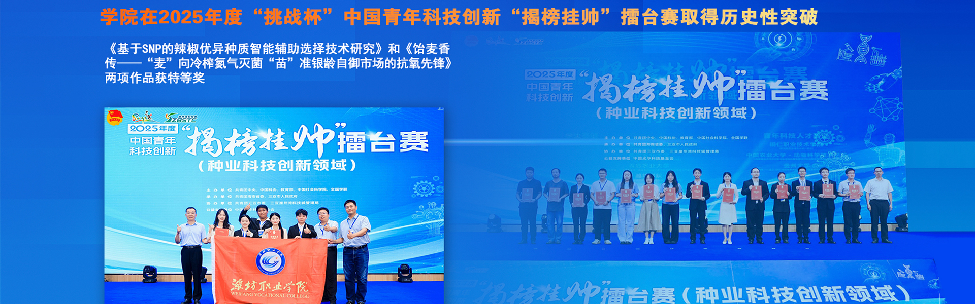 | 9月28日,2025年度“挑战杯”中国青年科技创新“揭榜挂帅”擂台赛(种业科技创新领域)在三亚崖州湾科技城创新研学谷落下帷幕。我院农林科技学院《基于SNP的辣椒优异种质智能辅助选择技术研究》《饴麦香传——“麦”向冷榨氮气灭菌“苗”准银龄自御市场的抗氧先锋》两项作品从全国300余所高校的参赛队伍中脱颖而出,双双荣获国赛特等奖,创学院在该项赛事“揭榜挂帅”赛道历史最佳成绩… [详细内容] |