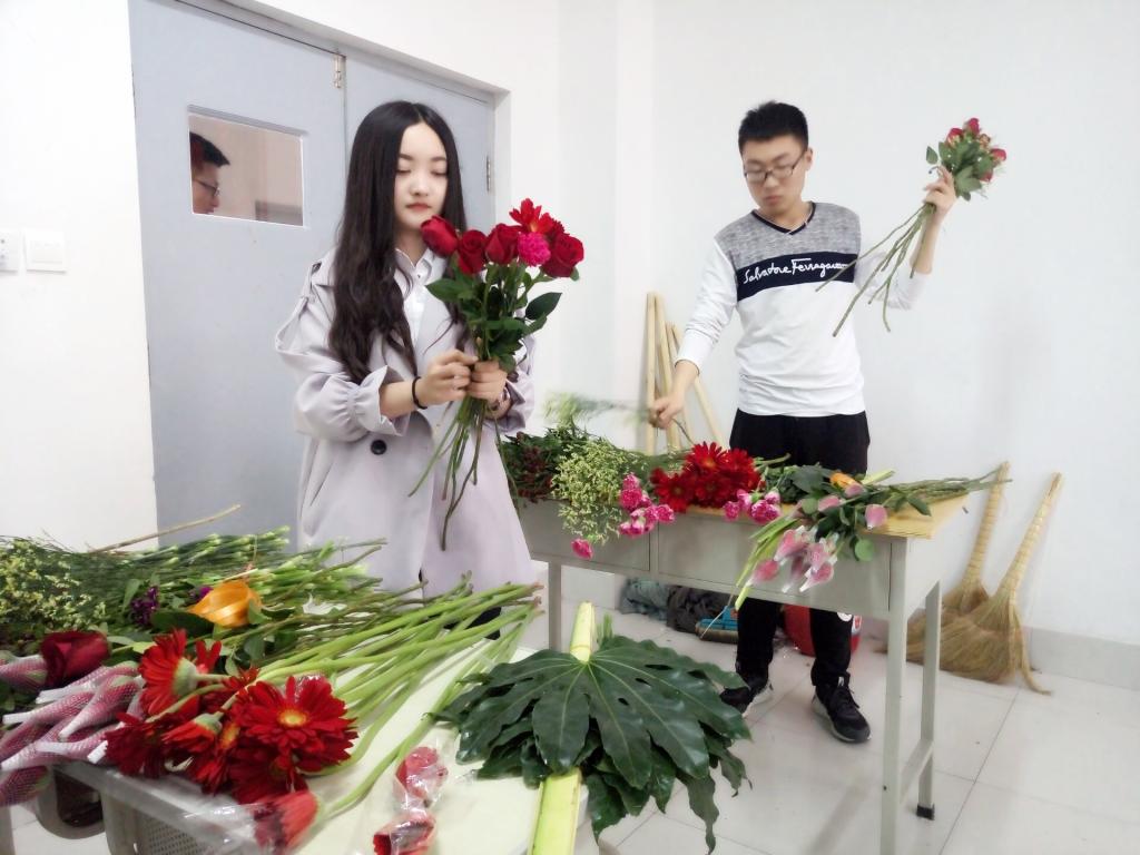 活动中大家把无言无语的花草赋予感情,在老师的指导下将一朵朵零散的花朵包扎成美丽的花束,将每朵花,每片叶都拥有了特殊的含义,从最初的整理花草,到最终的成品,同学们都竭尽全力,指导老师也给予现场参赛人员较高肯定。