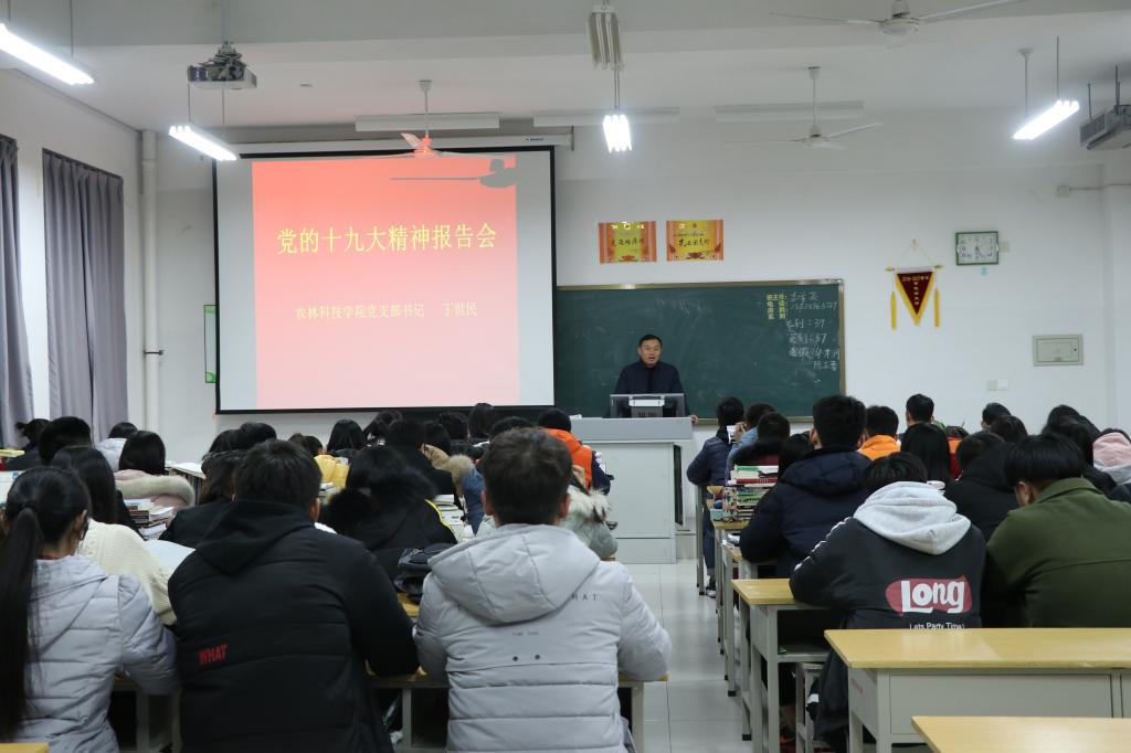 12月7日,农林科技学院开展党的十九大精神报告会。此次报告会由农林科技学院党支部书记丁世民担任主讲,农林科技学院百余名学生代表参加了本场讲座。