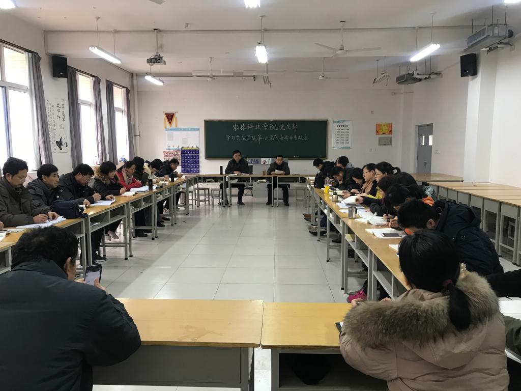 1月18日下午,农林科技学院党支部举行专题会议,认真学习贯彻学院第一次党代会精神。党支部负责同志主持会议,并就学习领会党委书记张洪全同志在学院第一次党代会上所作的《牢记使命,团结实干,为加快建设优质高职院校而努力奋斗》工作报告进行了深入解读。