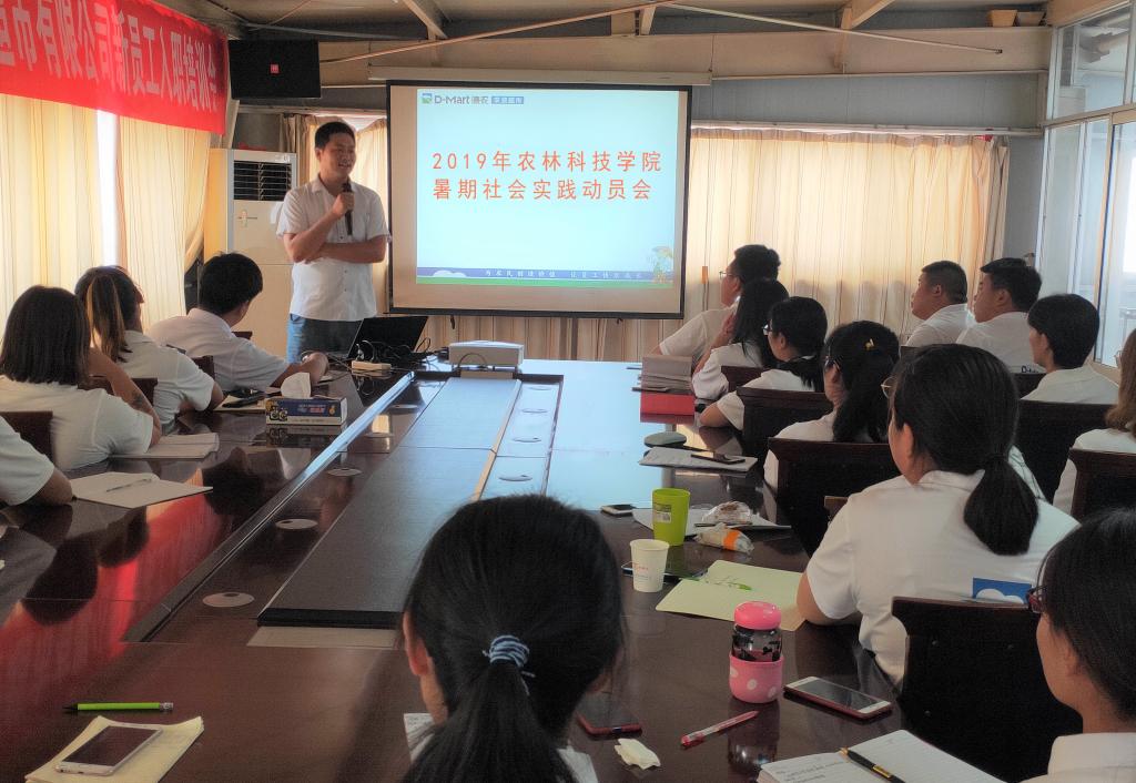 团队成员首先听取了中共德农农资超市有限公司支部书记刘希强的报告,他根据自己从事农业行业30余年的亲身经历,向同学们深刻解读了目前国家对于“三农”相关政策,目前青州市部分农村的经济发展状况,以及自己的创业过程中的种种经历。随后农林科技学院团总支负责老师进行了暑期社会实践动员,鼓励同学们不怕吃苦,利用自己的专业技能为国家精准扶贫战略尽一份力的同时也能够实现自己的人生价值。