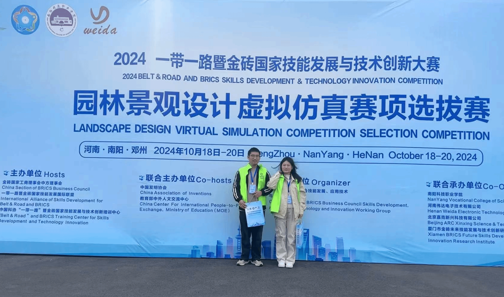 10月18日至20日,2024一带一路暨金砖国家技能发展与技术创新大赛园林景观设计虚拟仿真赛项选拔赛(北部赛区)在南阳科技职业学院举办。农林科技学院范朕、刘晓雨两位参赛选手,在竞赛中展示了专业技能水平和追求卓越的工匠精神,最终荣获三等奖。