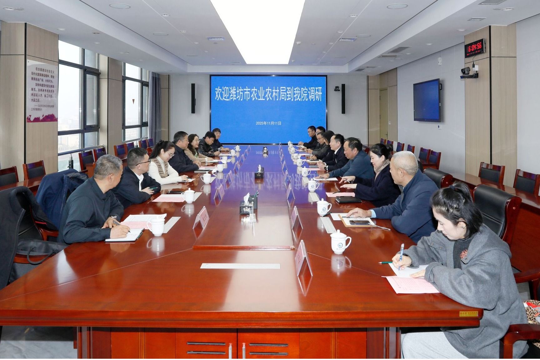 11月11日下午,潍坊市农业农村局党组书记、局长,市乡村振兴局局长刘煜带领相关部门负责人一行7人莅临我院,开展校地合作调研座谈。学院党委书记王浩,党委委员、副院长付一明陪同调研座谈,办公室、科技处、农林科技学院、汽车工程学院等相关部门负责人及博士代表参加交流。