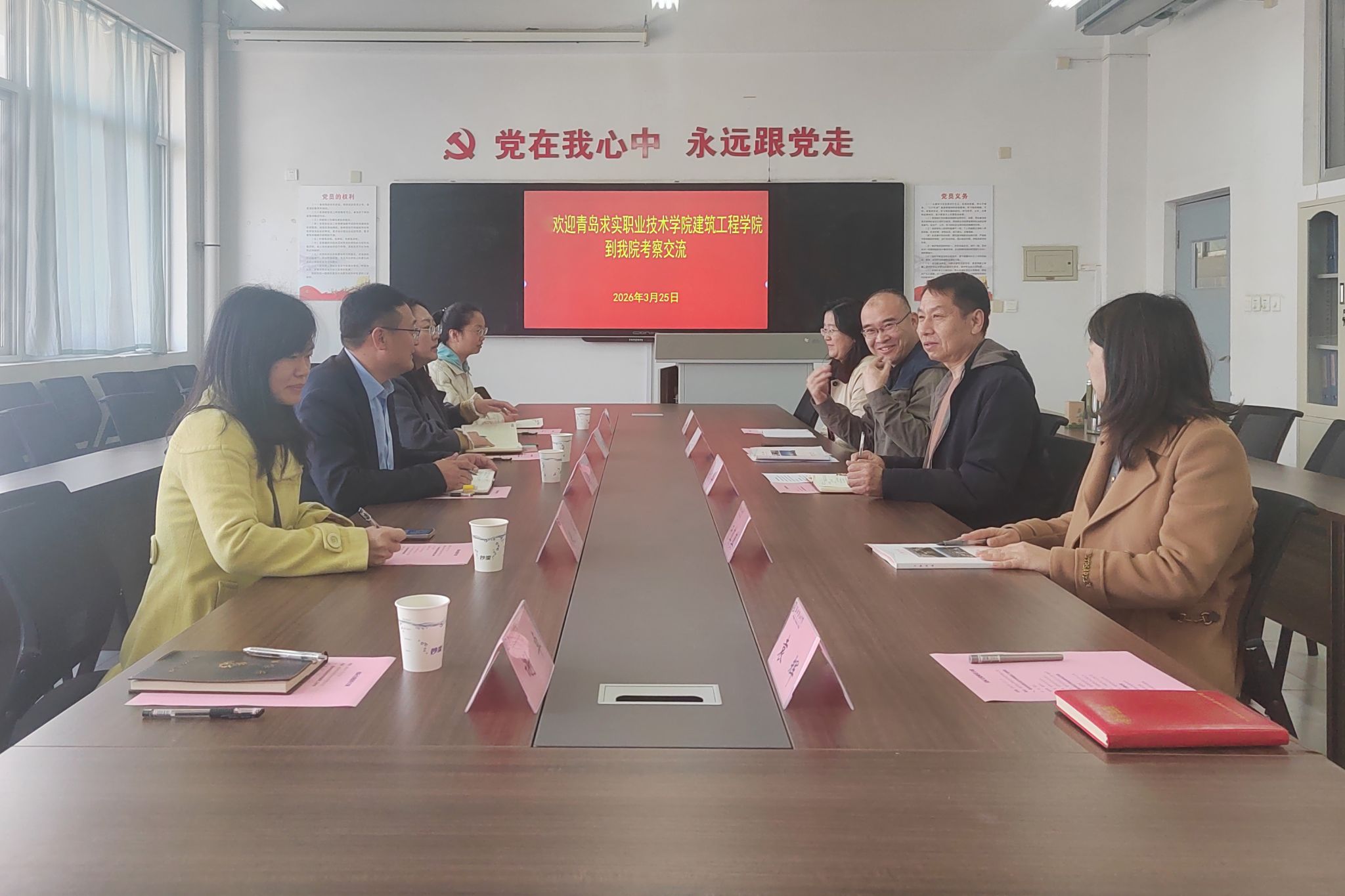 3月25日,青岛求实职业技术学院建筑工程学院院长李刚带队一行5人,到访农林科技学院开展校际交流座谈,农林科技学院副院长及相关科室负责人参会交流。