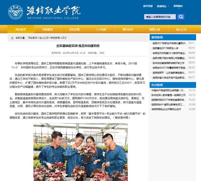 连续4年承担发展中国家花卉栽培、病虫害防治技术培训,为62个国家和地区培训专业人员165名,国际影响力大幅增强。师生为区域园林行业、企业提供技术服务年均600余人次,为全国园林系统员工培训10000余人次。作为山东省高职院校技能大赛协作训练基地,承担4个赛项的集训与选拔工作,承办省市职业院校技能大赛7次。专业教师到中央、省市电台录制农林科技服务节目22人次,被《人民日报》等多家媒体报道40多次。