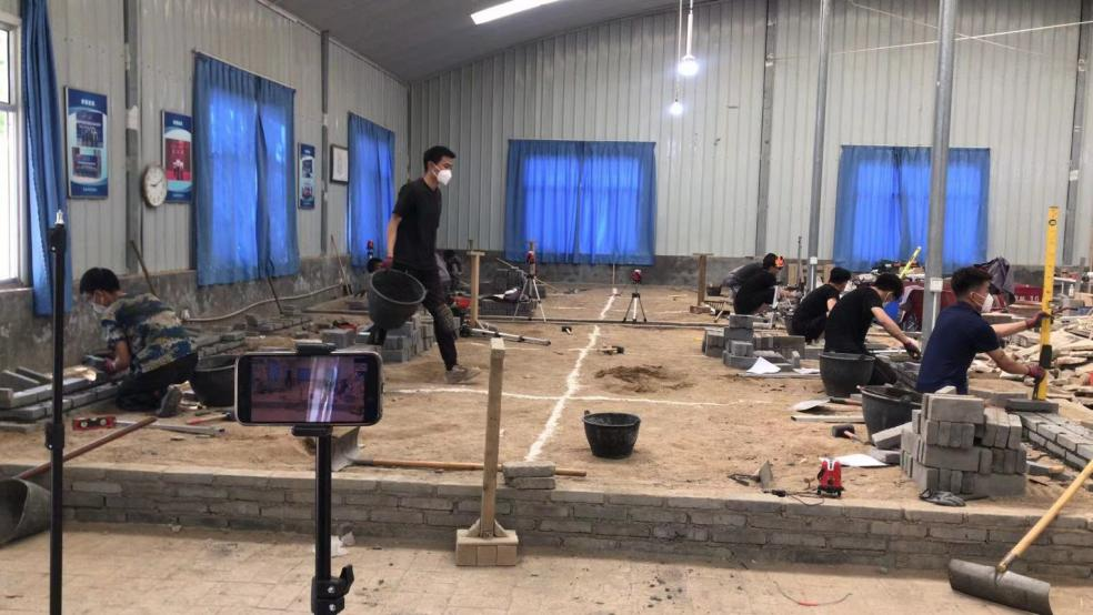 经过前期初赛和复赛,从园林技术、园林工程技术两个专业五个班中选出12名选手参加决赛,参考世界技能大赛模式,本赛项除了考查选手的体力、耐心和细心程度外,还考查其计算能力和动手能力,同时对个人防护、施工动作是否符合人体工学原理也作为考查项和扣分点。竞赛内容包括核对图纸等准备工作,施工材料和工具的选择,场地整理、放线、景墙基础开挖,基础砌筑、景墙墙体砌筑、景墙墙体封顶、勾缝,物品整理等环节。本次比赛一腾讯会议的形式,全程进行了网络直播和解说,受到了围观学生的一致好评。所有参赛选手在赛前进行了精心准备和刻苦训练,比赛期间热情高涨,展现了施工的最高水平,最终顺利完成了比赛。