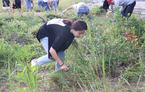 除草开始,同学们纷纷带上手套,拿起工具,积极投入到除草行动中。为提高工作效率,大家分工协作,分片区进行除草。劳动过程中,不管是使用工具亦或是用手拔,每个参与者都不怕脏不怕累、认真细致、干劲十足。整个除草场面忙而不乱,井然有序。经过大家的共同努力,很快,智能温室大棚北侧的杂草便被清理干净。