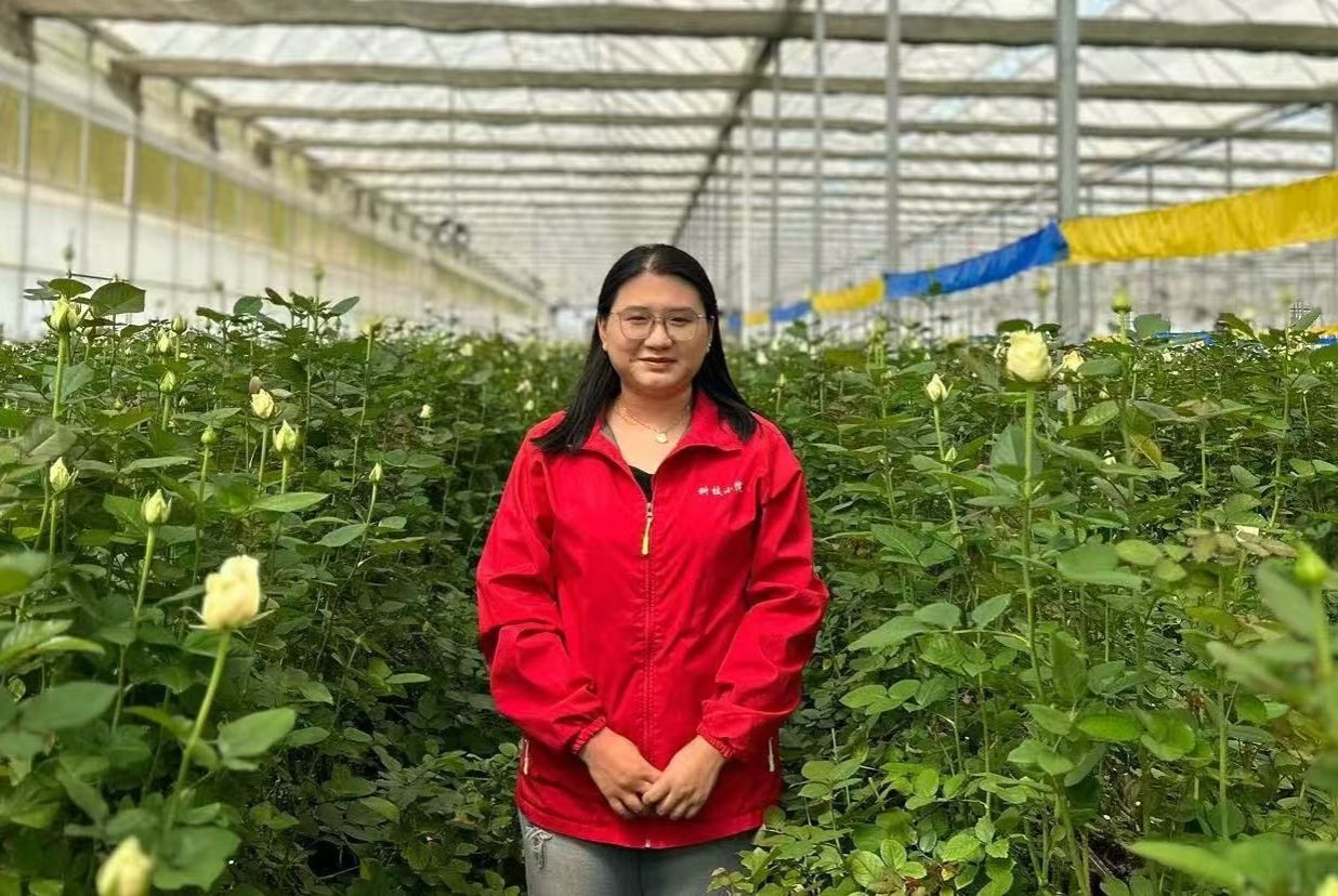 作为科技小院院长,她带领同学们积极开展小院工作,深入田间地头,在生产实践中 摸爬滚打,做调研、试验和农技推广。看到农户对她工作的认可,她认识到了自身的价值,立志以饱满的热情、高度的责任感和使命感,服务乡村振兴事业,用脚步丈量祖国大地。她 将继续秉持“ 自找苦吃 ”的精神,将课堂学习和生产一线紧密结合起来,着力于推动切花 月季产业的发展,为我国切花月季全产业链发展探索新出路,为提升中国农业的国际竞争 力做出贡献。