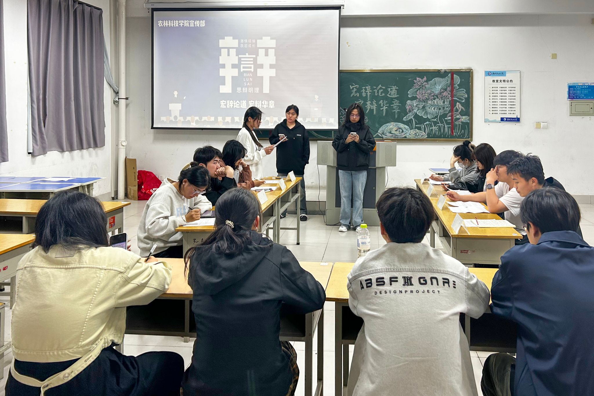 辩论赛包括车轮赛和决赛两个阶段。车轮赛阶段,参赛队伍通过抽签确定辩题与持方,围绕 “现代农业发展:技术创新与传统经验传承孰轻孰重”“直播带货:农产品销售的机遇之光还是泡沫之影”等议题展开探讨;决赛阶段,园林专业与园艺专业代表队以“乡村振兴:人才引擎驱动还是本土资源赋能”为辩题展开对决。双方辩手紧扣论点、旁征博引,在开篇立论中展现缜密逻辑,在攻辩环节中彰显机敏反应,自由辩论时更是妙语连珠、据理力争,充分体现了农林学子扎实的专业功底与家国情怀。最终比赛评选出一等奖1队、二等奖2队及“最佳辩手”3名。